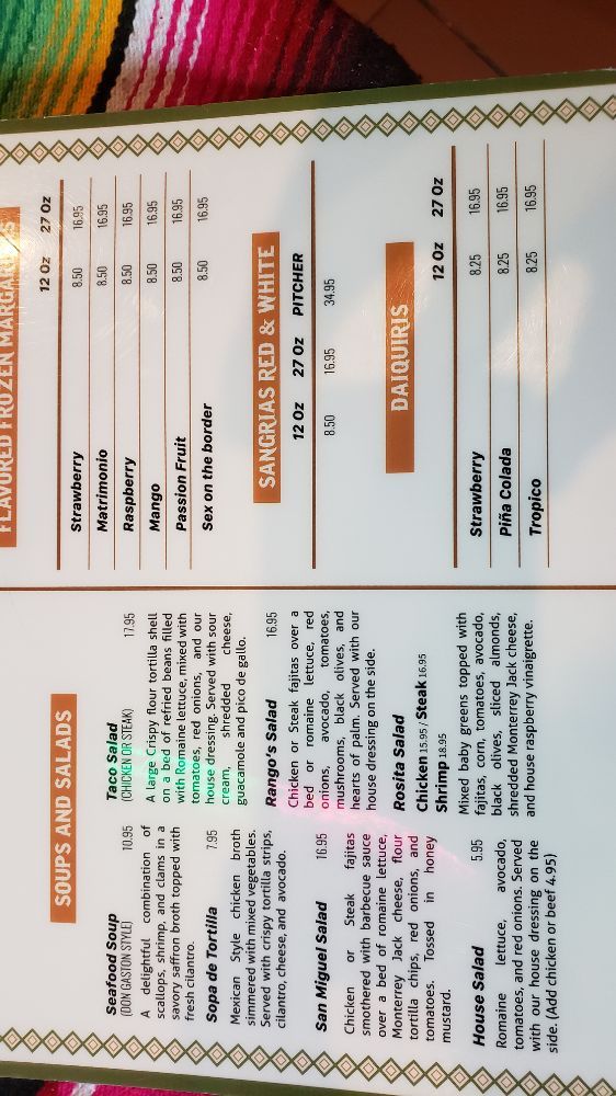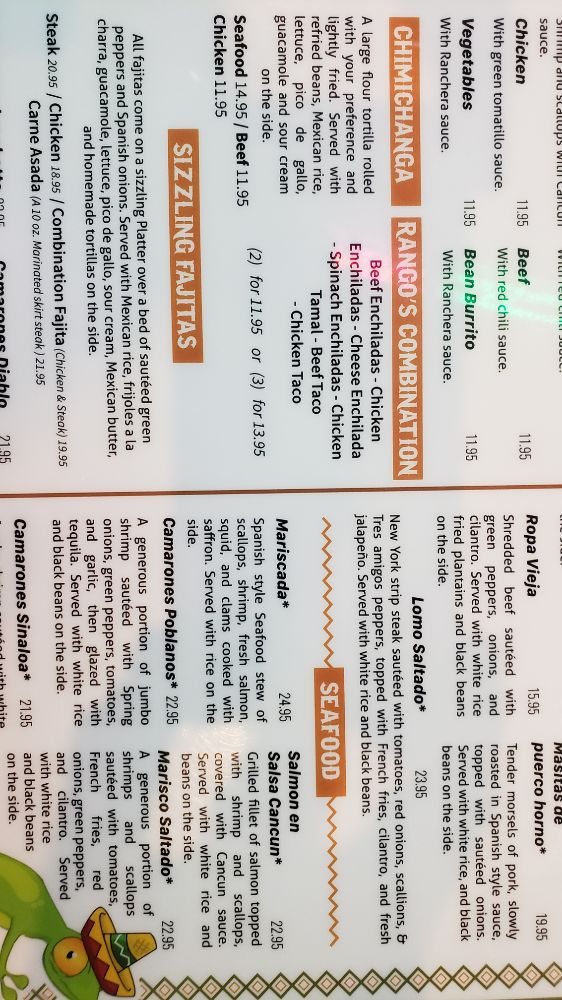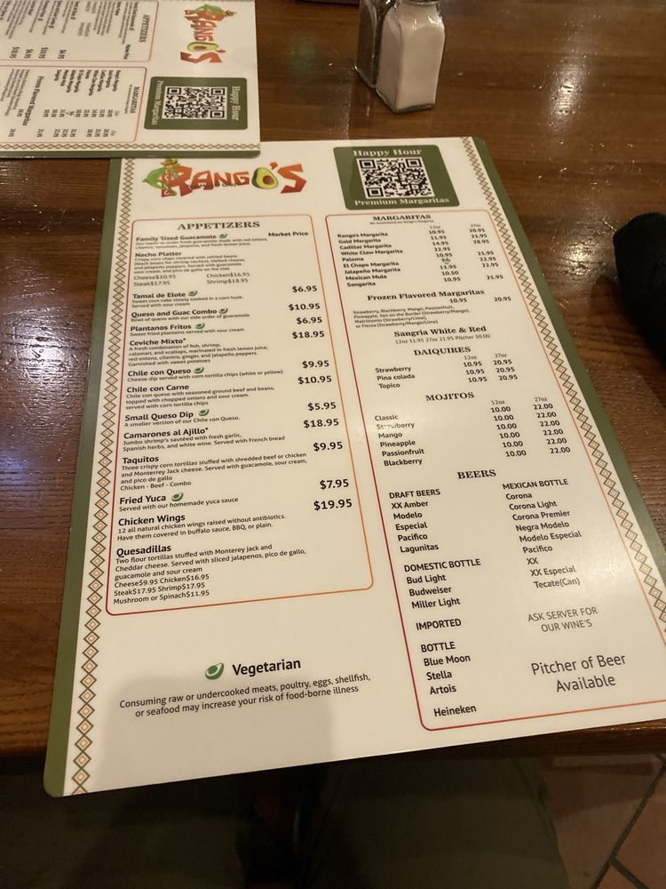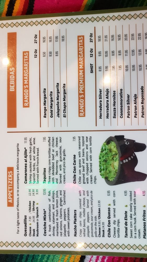 Rango’s Tex-Mex & Grill Menu (2025 Update)
